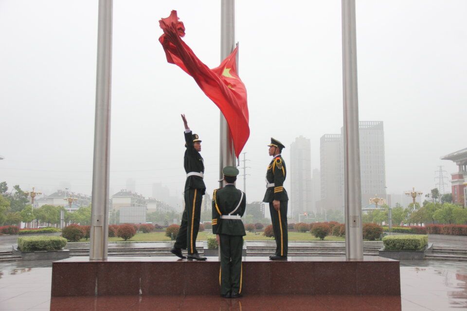 423日清晨伴随着蒙蒙细雨,土木系学生会成员一早来到广场参加学院“读书月主题升旗仪式”。广场上高举系旗的各系同学在指定位置站成整齐的队伍。升旗仪式开始,国旗班队员托举着国旗铿锵走来。随着国歌的奏响,全场一片肃静,在全体师生的注目中五星红旗缓缓升起,大家的眼神里透露出无以言说的自豪和对祖国深深的敬意。