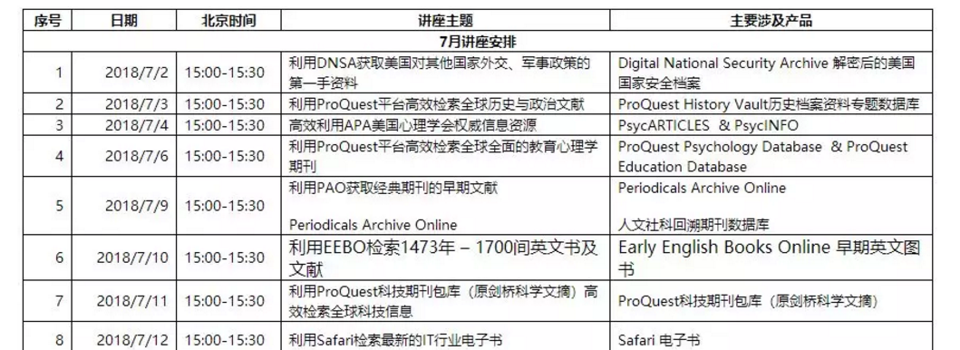 为了帮助读者更好地使用ProQuest电子资源资源,ProQuest推出了ProQuest网络课堂。每场培训均为网络实时进行,无IP限制,无需注册。期间可针对ProQuest产品提出问题,并与ProQuest培训师及其他用户进行实时交流。