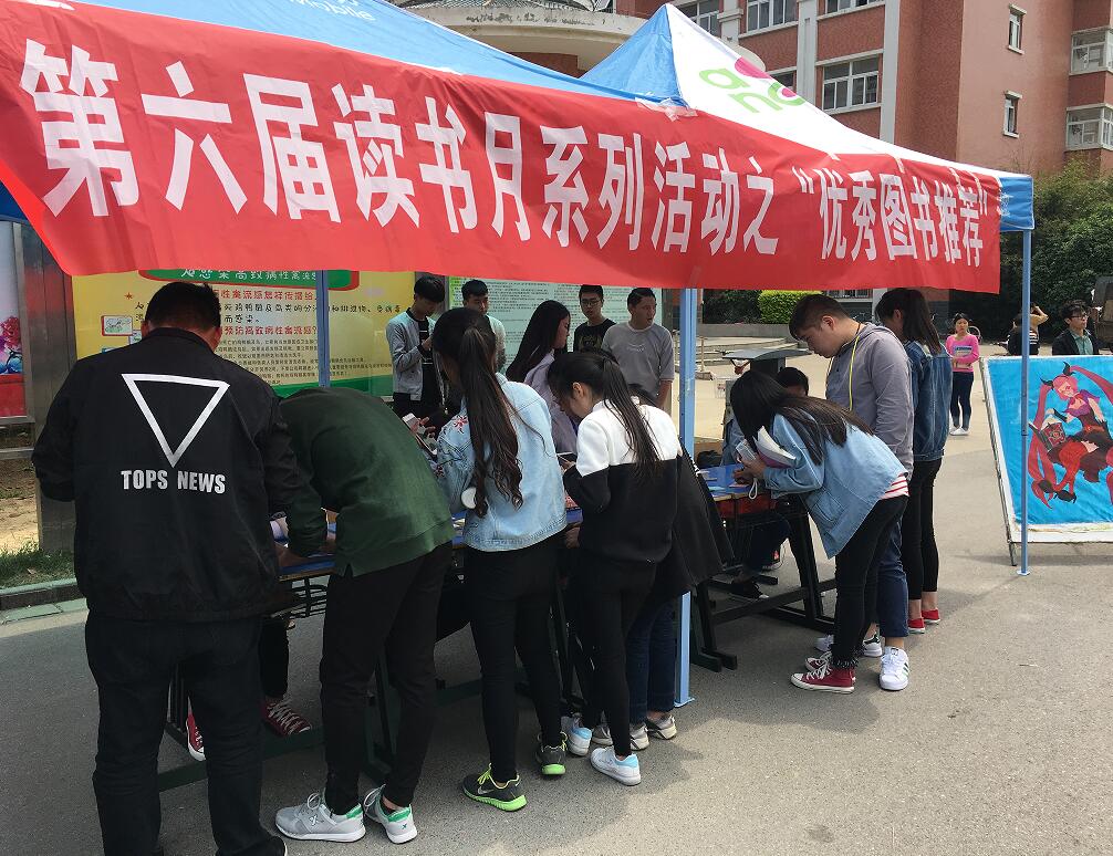 4月27日——28日,图书馆第六届读书月活动之“优秀图书推荐”在女生宿舍一号楼下举办。本次活动的目的是为了深入地了解我校学生对哪些方面的书籍需求量较大,从而让图书馆收藏更多学生们喜闻乐见的书籍,并形成全校爱阅读的良好风气。