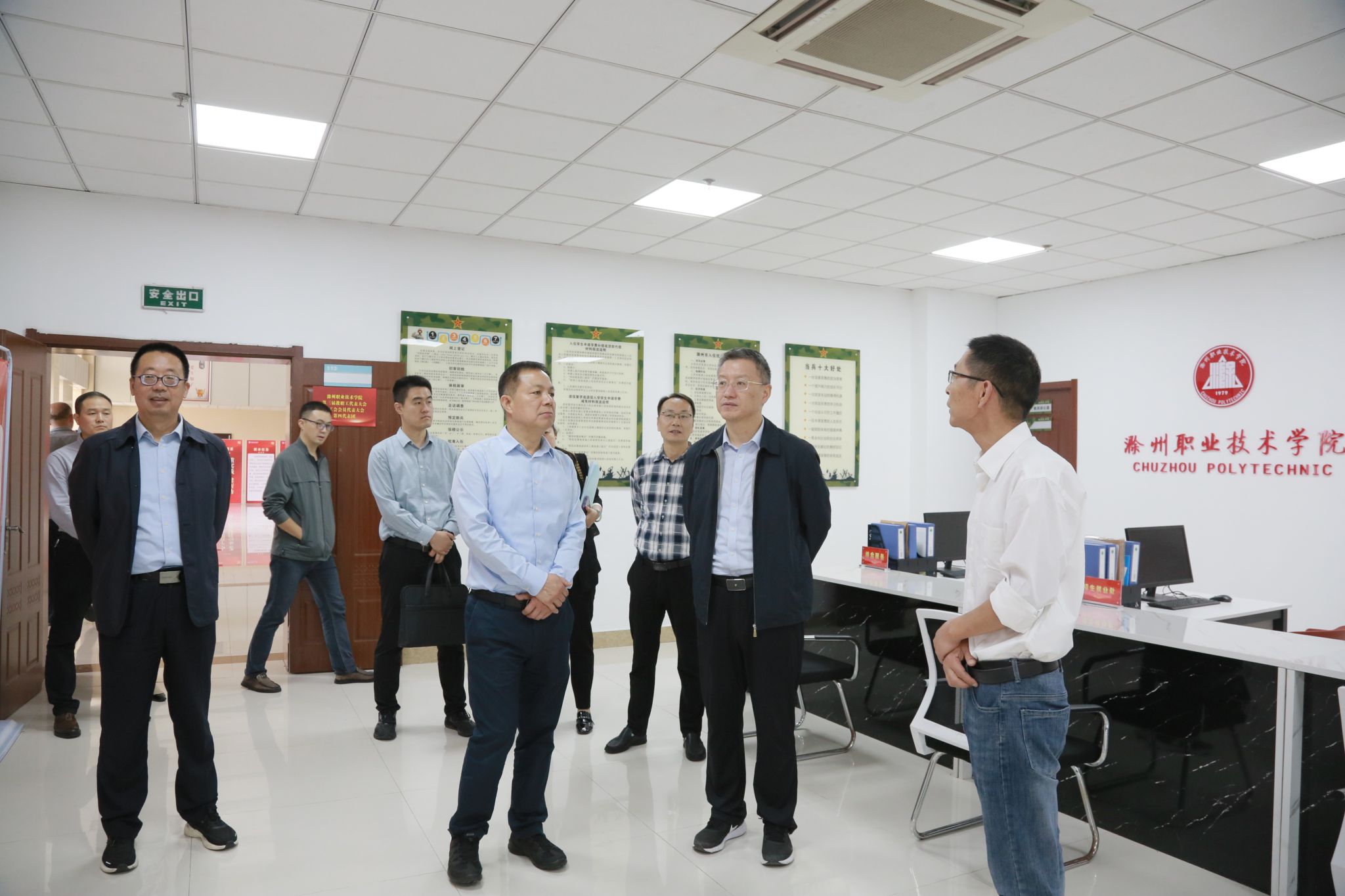 10月17日上午,阜阳市人大常委会副主任、阜阳幼儿师范高等专科学校党委书记金杰一行来我校考察,就“三全育人”综合改革、“一站式”学生社区建设、“第二课堂”建设等方面展开交流。我校党委书记曹付忠,党委委员、工会主席李平权陪同考察。校办公室、宣传统战部、学生工作处、团委、马克思主义学院等部门负责同志参与交流活动。