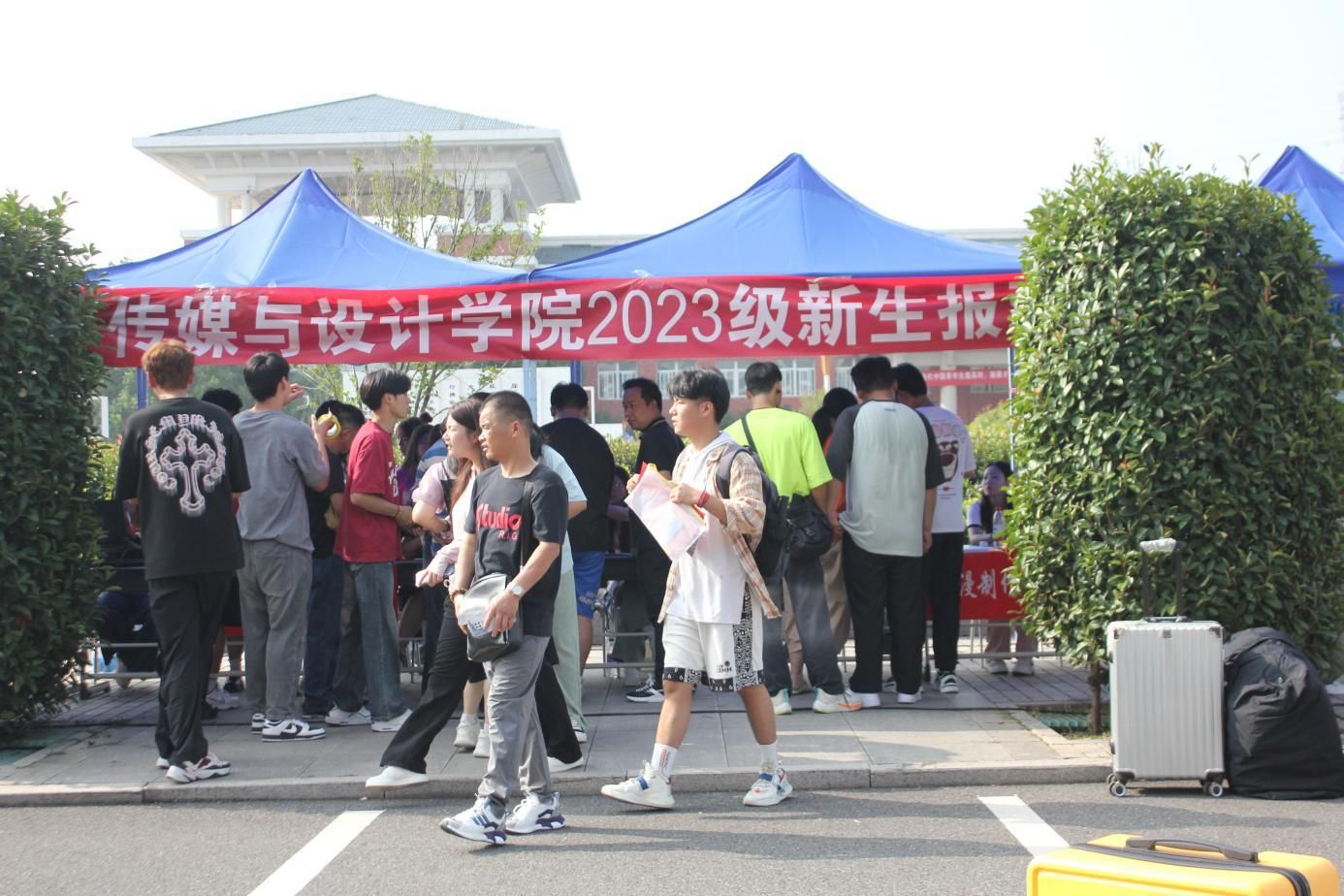 9月8-9日是2023级新生的报到日,amjs澳金沙门线路首页传媒与设计学院2023级新生们迎着骄阳,怀揣梦想,陆续来到校园。