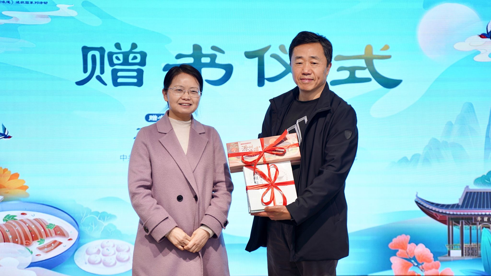 活动现场还举行了“书籍+书签”捐赠仪式,王连侠代表出品方向我校捐赠了《二十四节气里的滁州味道》图书和文创书签,杨家庆代表学校接受捐赠。