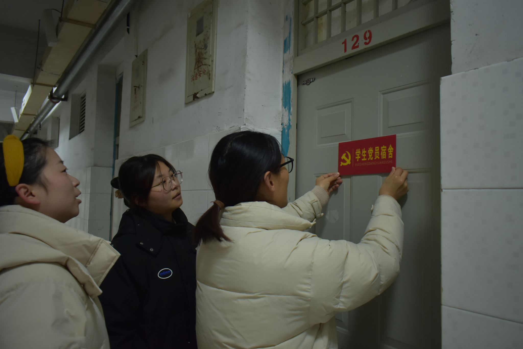 学院党总支副书记张功会、学生管理党支部书记李瑞瑞带领支部党员教师走进学生宿舍,与学生党员座谈交流,详细了解学生党员参加党组织生活、日常学习和生活情况,并张贴“学生党员宿舍”标牌。张功会向学生党员介绍了此次活动的目的意义,指出“亮牌活动”是对学生党员身份的认可,更是对学生党员日常行为的监督,鼓励大家要时刻牢记党员身份,勇于承担新的历史责任和时代使命,积极作为、率先垂范。
