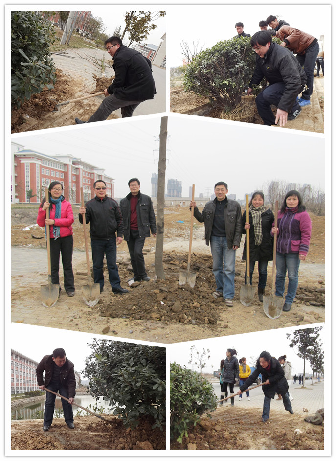 为迎接全国植树节的到来,我系全体教师和部分学生志愿者发挥了不怕苦不怕累的精神,挥锹铲土,共同植下12棵绿色的希望。本次植树深化了师生爱护校园爱护环境的意识,同时又锻炼了身体,增进了友谊,愿我们的校园环境更加美丽,更加和谐。