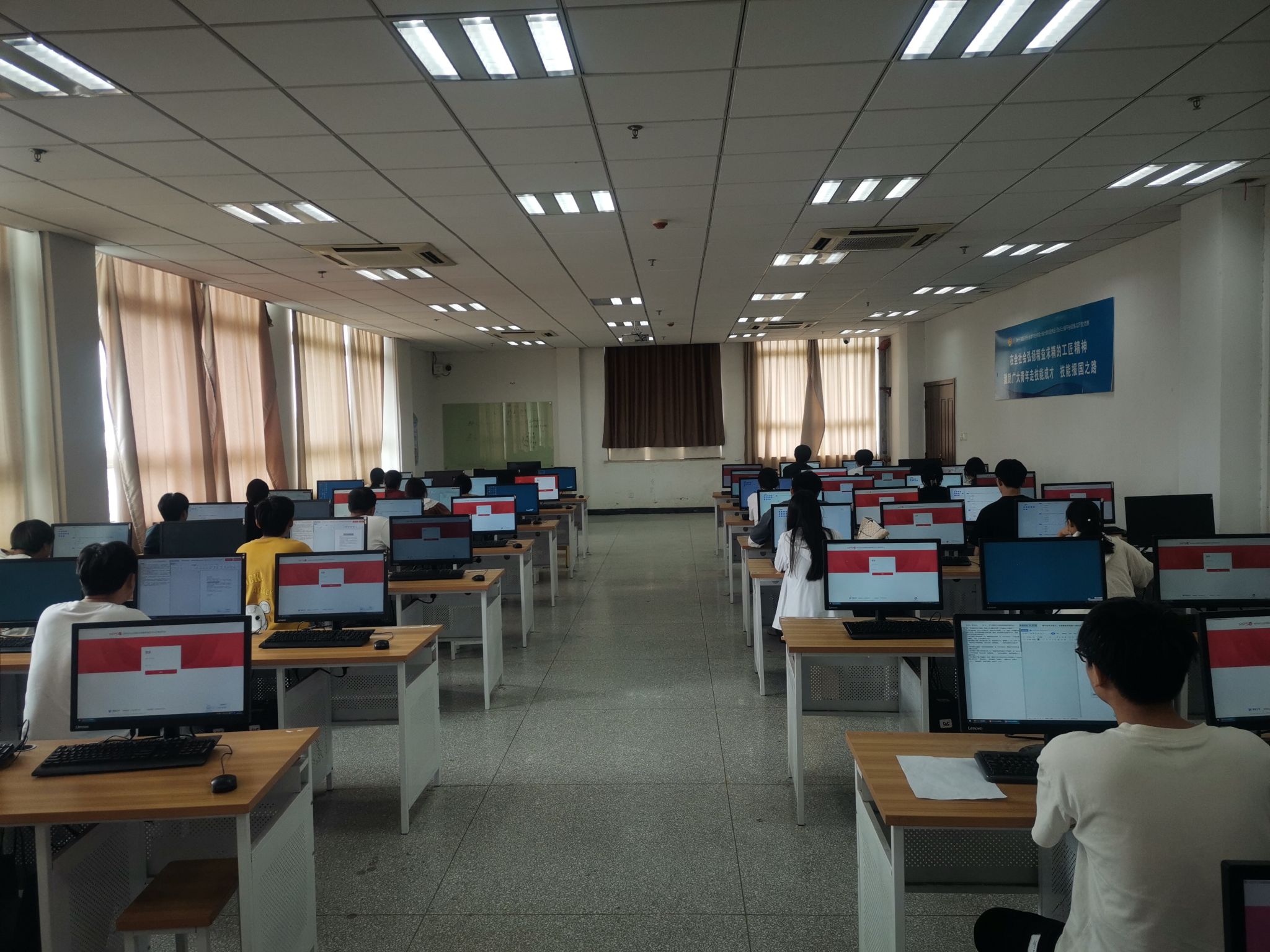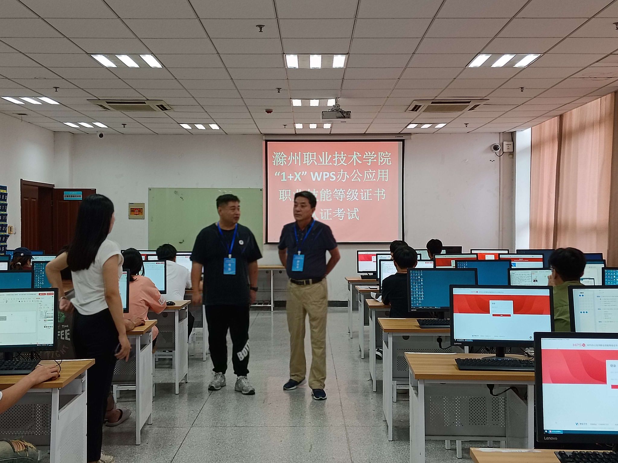 2023年9月14日,我校开展了全国“1+X”WPS办公应用职业技能等级证书考试。本次考试在综合楼Z503、Z505机房举行,信息工程学院47名同学参加本次认证考试。WPS办公应用作为我校的“1+X”试点证书,学校对本次证书考试工作高度重视,校实训中心主任曹晓斌巡视了考场。