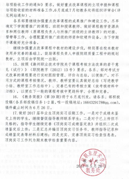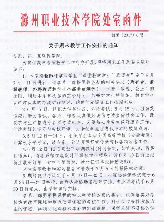 转发《教函[2017]6号--关于期末教学工作安排的通知 (上半年)》