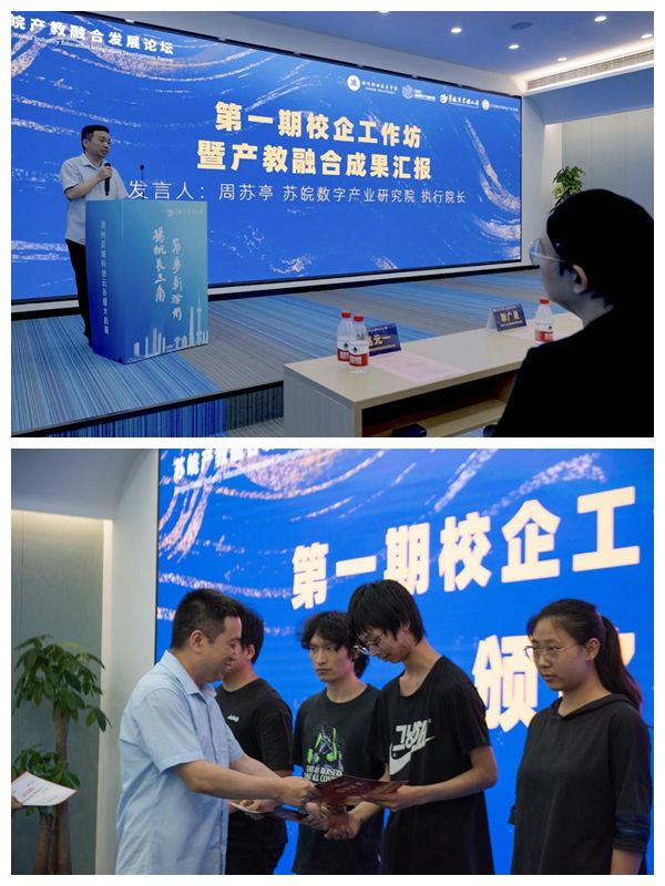 在精彩的主题分享后,苏皖数字产业研究院执行院长周苏亭对第一期校企工作坊暨产教融合成果做了详细点评。并为第一期校企工作坊优秀学员颁发了荣誉证书。校企工作坊是由我校指导、由苏研院搭建平台,带领学生参与企业实践项目的轻型产教融合新模式,第一期工作坊已卓有成效,培养了一批行业刚需型人才。