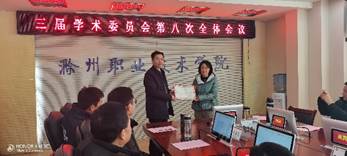 第三项议程,由学术委员会秘书长刘青汇报三届学术委员会2020年工作情况。三届校学术委员会在校党委的统一领导下,自2020年6月成立以来,严格按照《校学术委员会章程》开展工作,先后召开了七次会议,共审议了18项议题,涉及新专业申报、项目管理、制度建设、职称评审等多个方面,较好的履行了学术委员会各项权利和义务。
