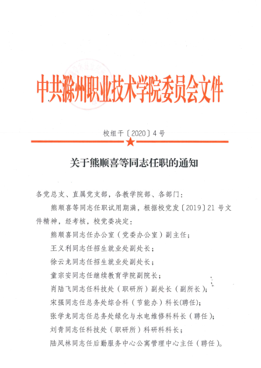 关于熊顺喜等同志任职的通知